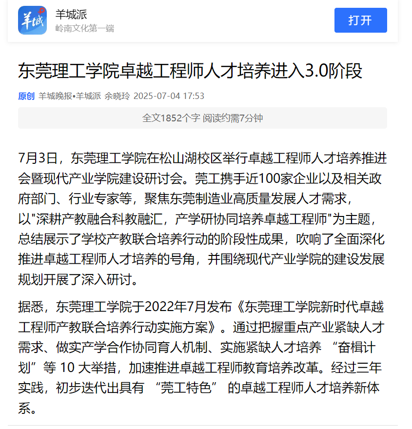 扎根湾区深融东莞 卓越工程师培养的“莞工范式”