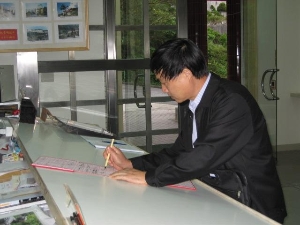 王江水副书记在参观薄上留言                    王江水副书记赠送华梵大学纪念品