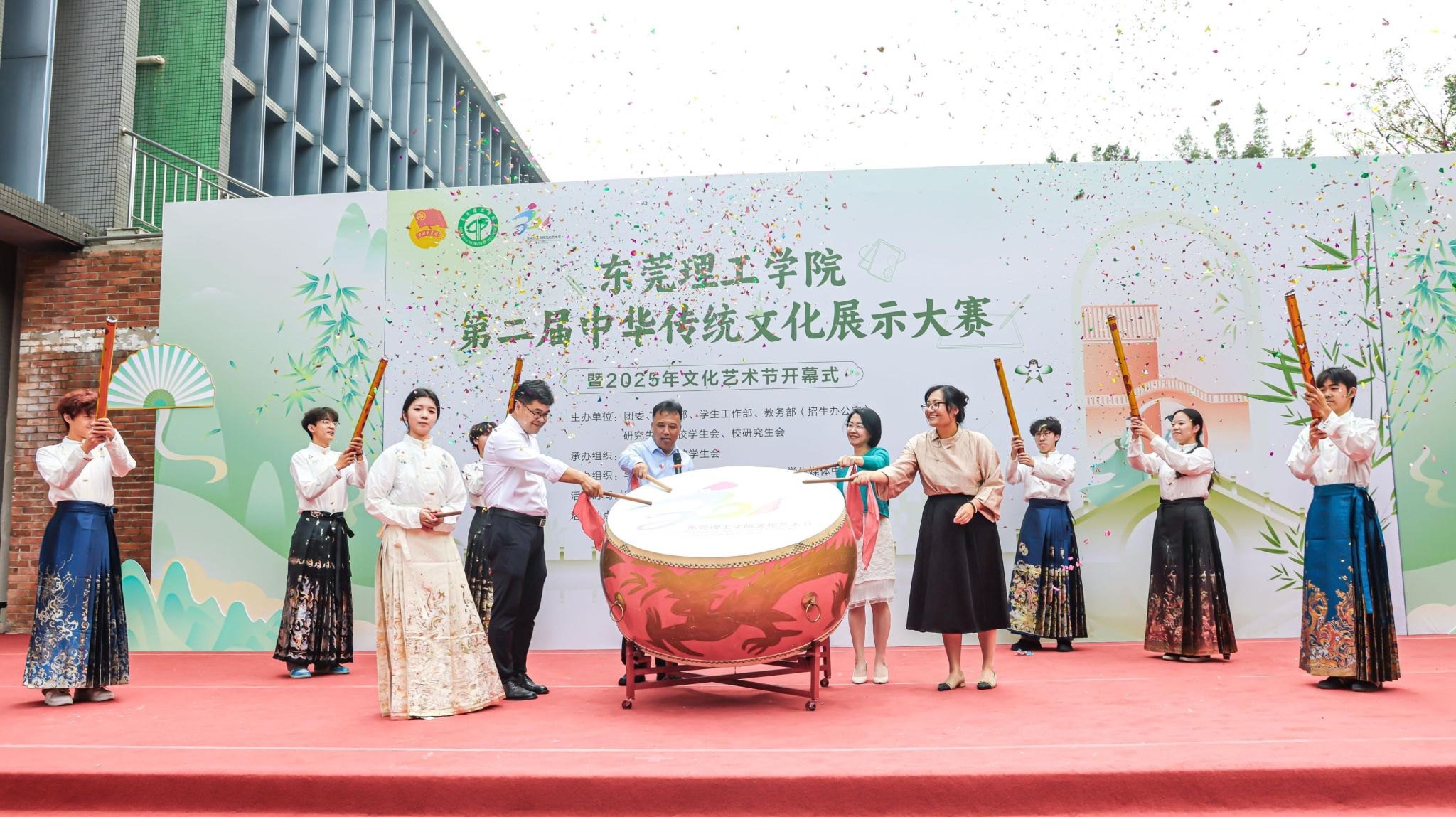 3月27日,由校团委、宣传部、学生工作部、教务部联合主办,校学生会、学生社团发展中心、学生艺术团及学生媒体中心共同承办的中华传统文化周系列活动之第二届中华传统文化展示大赛暨2025年文化艺术节开幕式在松山湖校区学思广场举行。校党委副书记、校长马宏伟,校党委委员、宣传部部长邹琼,文化艺术节组委会全体成员、各部门负责人与师生代表齐聚一堂,共同见证这场传统文化的盛会。