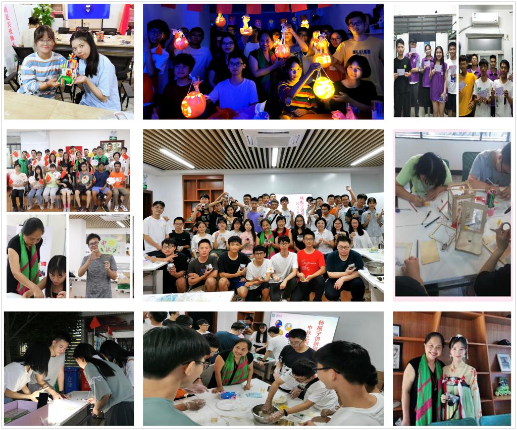 知行学院多功能活动室与知行团学活动室作为本次松山湖校区中秋活动的主会场,由知行团学和杨振宁创新班主要负责。莞城校区主会场、分会场均由知行团学联合莞思、莞和分院开展。其中,“柚子灯笼”制作活动集创新、工艺于一体,既让参与者身处节日欢乐氛围,使其感受中华传统文化魅力,还能将亲手制作的灯笼赠送好友,极具纪念意义;“品茶赏月做月饼,唱歌猜谜度佳节”活动包括制作月饼、唱歌比赛、合照拍小视频送祝福等内容,同学们在合作游戏间增进感情、排解乡愁。